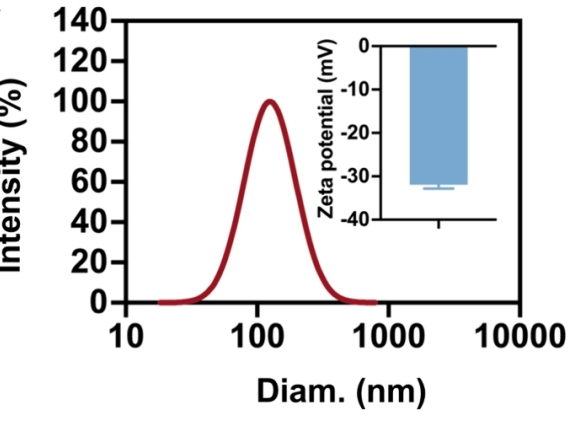 该研究为了探究药物本身的药效及稳定性,首先用90Plus PALS的动态光散射模式(DLS)分析了米诺地尔纳米颗粒的粒径分布情况,如结果显示,纳米颗粒的平均粒径约在100-200 nm之间,且分布较为均匀。这样的粒径大小非常适合通过微针进入皮肤深层,避免了颗粒过大造成的堵塞问题。同时均匀的粒度分布确保了药物能够在皮肤中均匀扩散,有助于提高米诺地尔的药物滲透效率,使药物在毛囊处的浓度保持稳定,从而达到更持久的治疗效果。